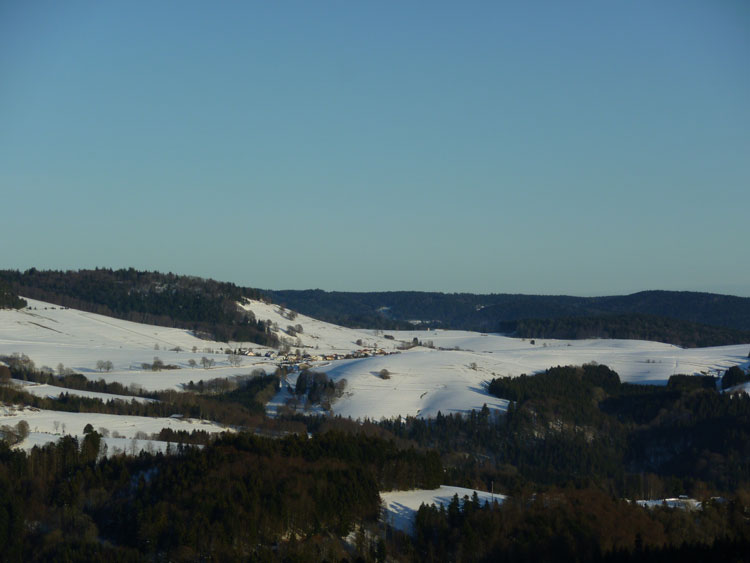 Natürlich kann man mit meinem kleinen Handfotoapparat nicht mit Luftbildaufnahmen des Schwarzwalds von Erich Meyer konkurrieren. Daher hier diese tolle Aufnahme des Schweizer Jura mit dem Fern-Seh-Turm Chrischona am rechten Bildrand. |