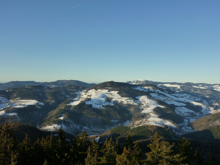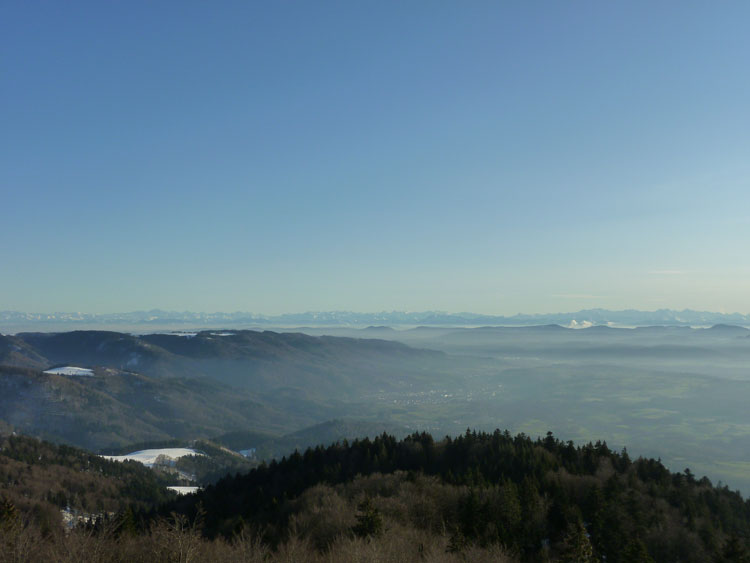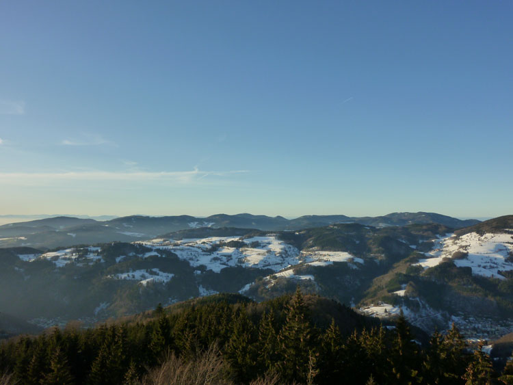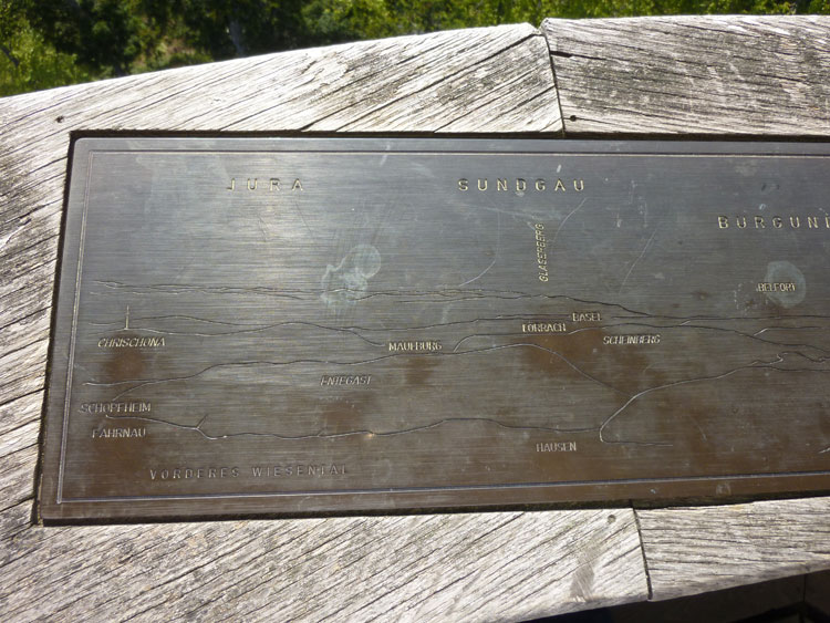 Bei Gegenlicht ist es immer schwierig zu fotografieren. Daher bleibt der Ausblick zum Sundgau und Burgundischer Pforte größtenteils Ihrer persönlichen Wahrnehmung vorbehalten. |