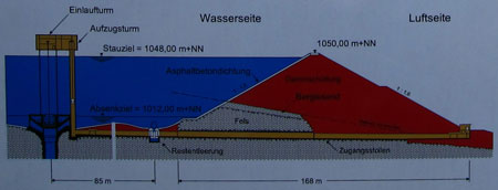 erfolgt in einem Kavernenkraftwerk. Zunächst wurde eine 219,0m lange, 35,3m hohe und