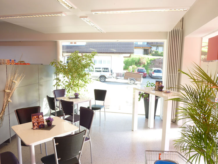 Café - Ecke, in der Sie süße oder deftige Backwaren bei frischem Kaffee oder anderen Getränken mit dem Lesestoff Ihrer Wahl vor Ort in aller Ruhe genießen oder auch ein Schwätzchen halten. |