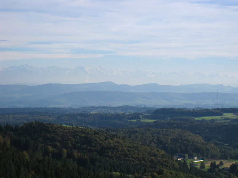 ... auf 11, 12 oder 13 Etappen von Pforzheim nach Basel über die östliche Variante via Schwellen in Gersbach zum Modellflugplatz. Dort haben Sie Aussicht auf das Golddorf Gersbach, das Hornbergbecken und die Alpen. |
